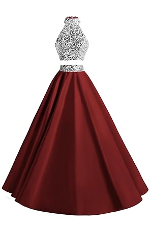 Msjune Women Two Piece Prom Dress Beaded Long Party Gowns Evening