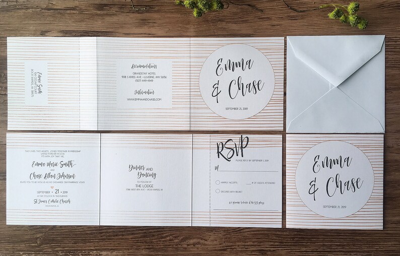 Tri Fold All In One Wedding Invitation Suite Rose Gold And Etsy