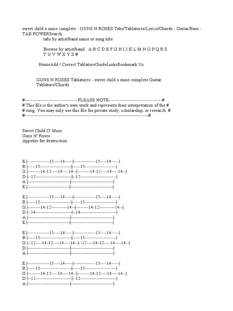 Sweet Child O Mine Guns N Roses Tabs Music Theory 22 Views
