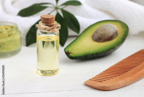 Avocado Oil In Bottle Green Fruit Comb Cosmetic Benefits Healthy