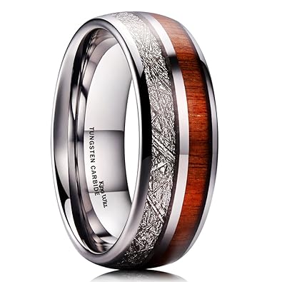 Mens Tungsten Ring Wood Inlay Dome Band Comfort Fit Jewelry Wedding
