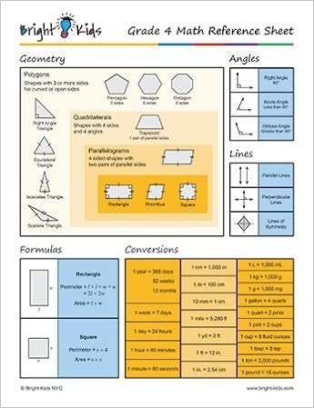 Amazon Com Common Core Math Formula Sheet 4th Grade