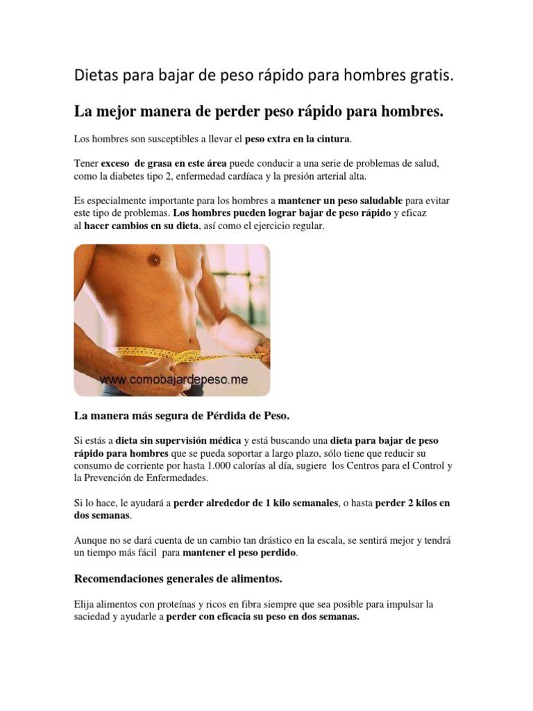 Dietas Para Bajar De Peso Rapido Para Hombres Gratis