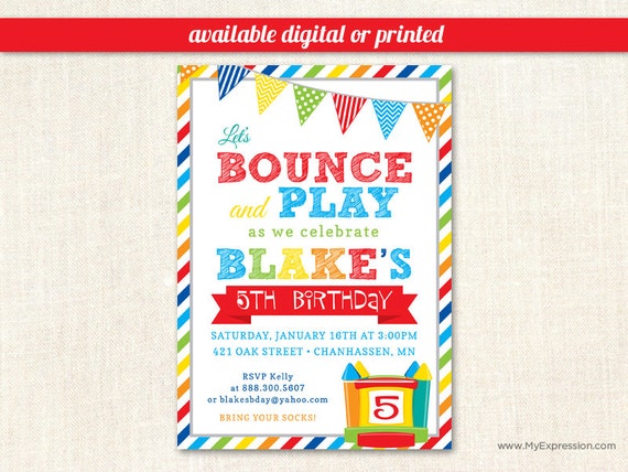 Brawny Stripes Bounce House Boys Birthday Invitations Pump Etsy