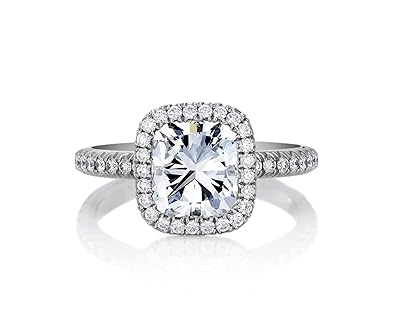 147 carat gia certified 14k white gold halo cushion cut diamond engagement ring 072 ct e color vvs2 clarity center 262000 2620. The soft curves of this cushion shaped halo diamond engagement ring feature a single row of micro pave set round brilliant cut diamonds. A favored choice among celebrities cushion cut engagement rings have rounded corners and larger facets to increase its radiance.
