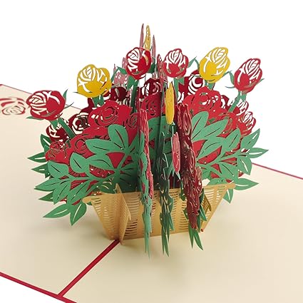 Amazon Com Fathers Day Card Rose Flower Basket Pop Up Cards 3d