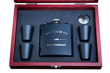 Amazon Com Will You Be My Groomsman Wooden Gift Box Flask Set