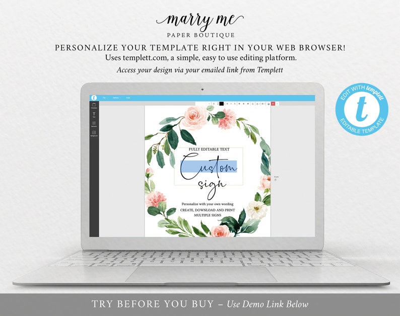 Create Multiple Wedding Signs Pink Floral Greenery Template Etsy