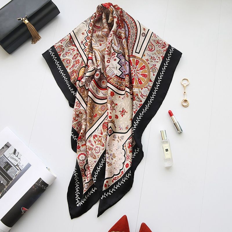Large Square 100 Silk Scarf Shawl Indian Exotic Print Fashion
