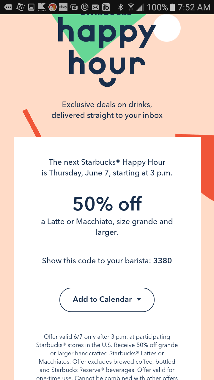 Starbucks 50 Off Macchiato Or Latte Size Grande Or Larger