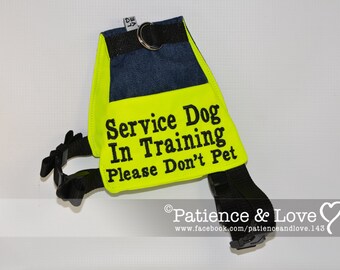 This vest features the heart and paw service dog logo unconditional love and the words service dog in training.